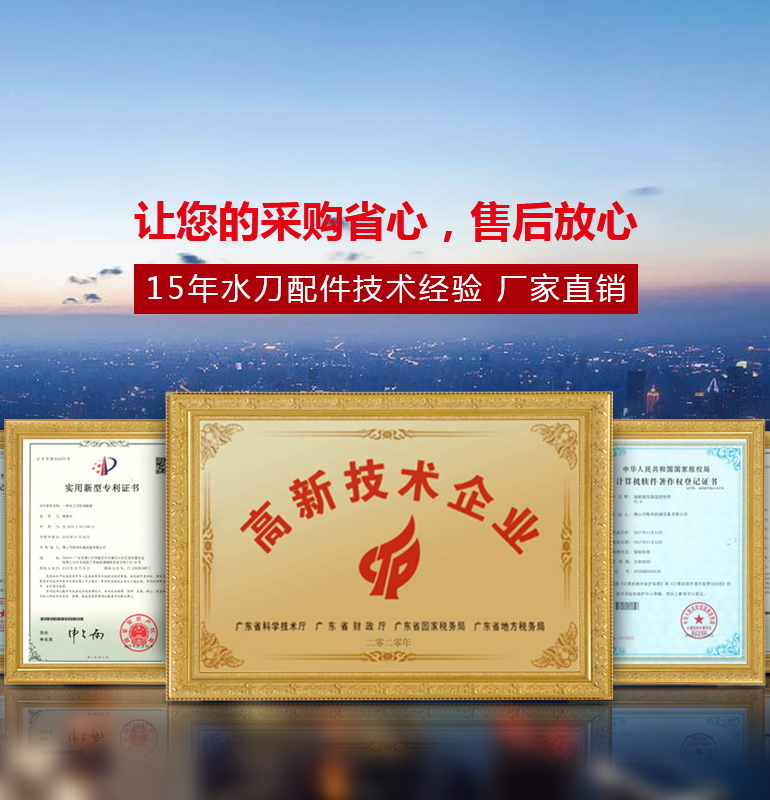 廣大用戶熟知且認可的水刀配件廠家? 海冉品牌原裝產品 ? 多重認證資質全
